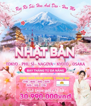 Nhật Bản mùa hoa anh đào luôn là giấc mơ của mọi tín đồ du lịch. Hành trình 5 ngày 5 đêm này sẽ đưa du khách đi qua “Cung đường vàng” nổi tiếng nhất xứ sở Phù Tang. Từ sự hiện đại sầm uất của Tokyo đến vẻ đẹp cổ kính của cố đô Kyoto, từ sự hùng vĩ của núi Phú Sĩ đến nét văn hóa ẩm thực độc đáo tại Osaka và Kobe. Đặc biệt, du khách sẽ được bay cùng hãng hàng không 5 sao Japan Airlines, trải nghiệm tàu Shinkansen siêu tốc và thưởng thức bò Kobe trứ danh.