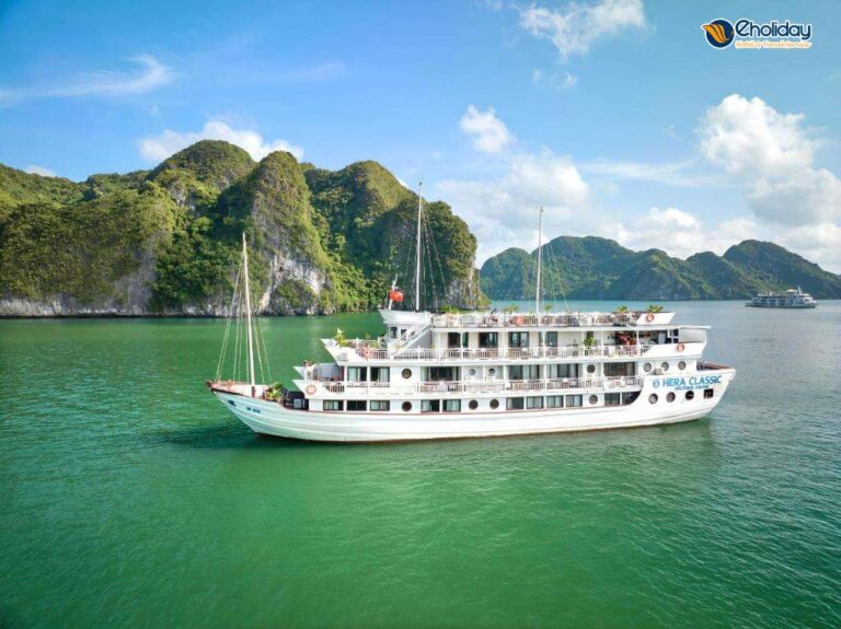 Hera Classic Boutique Cruise – Du thuyền 4 sao mang đến hành trình 3 ngày 2 đêm khám phá trọn vẹn vẻ đẹp Vịnh Hạ Long. Du khách sẽ được tham quan hang động lớn nhất vịnh (Hang Sửng Sốt), tắm biển tại đảo Titop, chèo Kayak tại Hang Luồn và khám phá Làng Ngọc Trai.