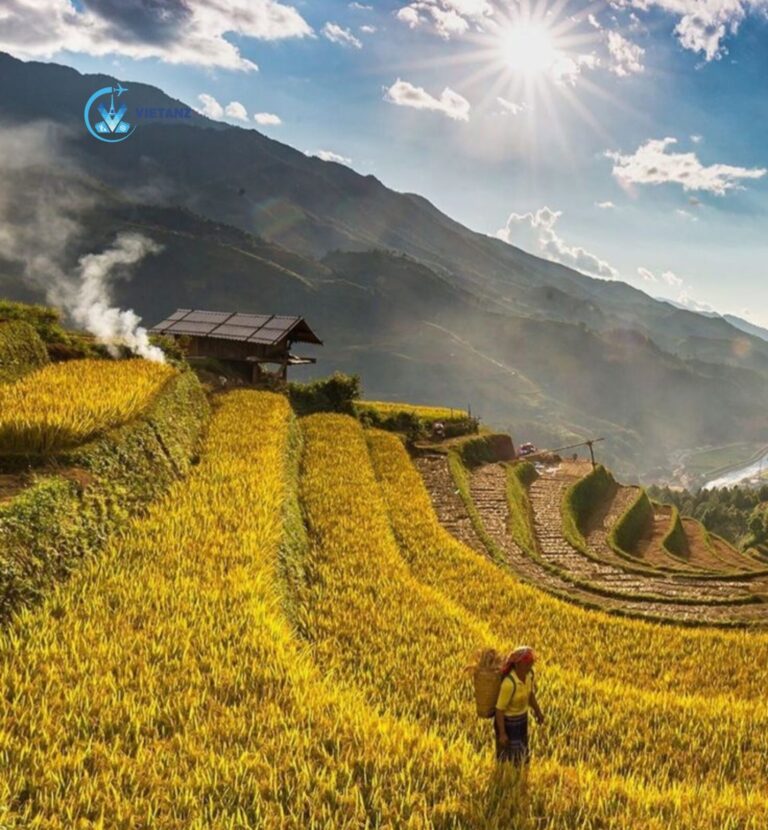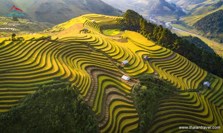 Chương trình đưa du khách đến với Mù Cang Chải – nơi có những thửa ruộng bậc thang tầng tầng, lớp lớp tựa như những nấc thang lên đến tầng trời. Điểm tô trên những thửa ruộng ấy là màu vàng óng ả của lúa chín rộ vùng Khau Phạ. Kết hợp nghỉ dưỡng tại Trạm Tấu với nguồn suối khoáng nóng tự nhiên giúp xua tan mệt mỏi.