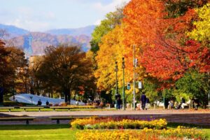 - Odiro Park là “lá phổi xanh” trải dài giữa trung tâm Sapporo, nơi nhịp sống đô thị hòa quyện cùng thiên nhiên bốn mùa. Khi thu về, những hàng cây dọc công viên chuyển sắc vàng và đỏ rực rỡ, tạo nên con đường mùa thu đầy thơ mộng – điểm dạo bước lý tưởng để cảm nhận vẻ đẹp lãng mạn đặc trưng của Hokkaido.