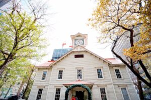 - Sapporo Clock Tower là biểu tượng lịch sử lâu đời của Sapporo, được xây dựng từ thế kỷ 19 theo phong cách kiến trúc phương Tây cổ điển. Giữa nhịp sống hiện đại, tòa tháp gỗ nhỏ xinh vẫn vang tiếng chuông đều đặn, gợi nhớ về những dấu ấn đầu tiên trong quá trình phát triển của Hokkaido.