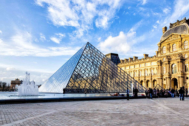 - Chụp hình bên ngoài Bảo Tàng Louvre: Với kiến trúc Kim Tự Tháp bằng kính độc đáo, nơi trưng bày Mona Lisa.