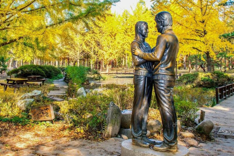 - Đảo Nami (Nami Island) – hòn đảo mang vẻ đẹp bình yên nhờ phong cảnh thiên nhiên hữu tình, thơ mộng. Đây là nơi được lựa chọn làm bối cảnh quay bộ phim truyền hình nổi tiếng “Bản tình ca mùa đông”, cũng như nhiều bộ phim Hàn nổi tiếng khác.